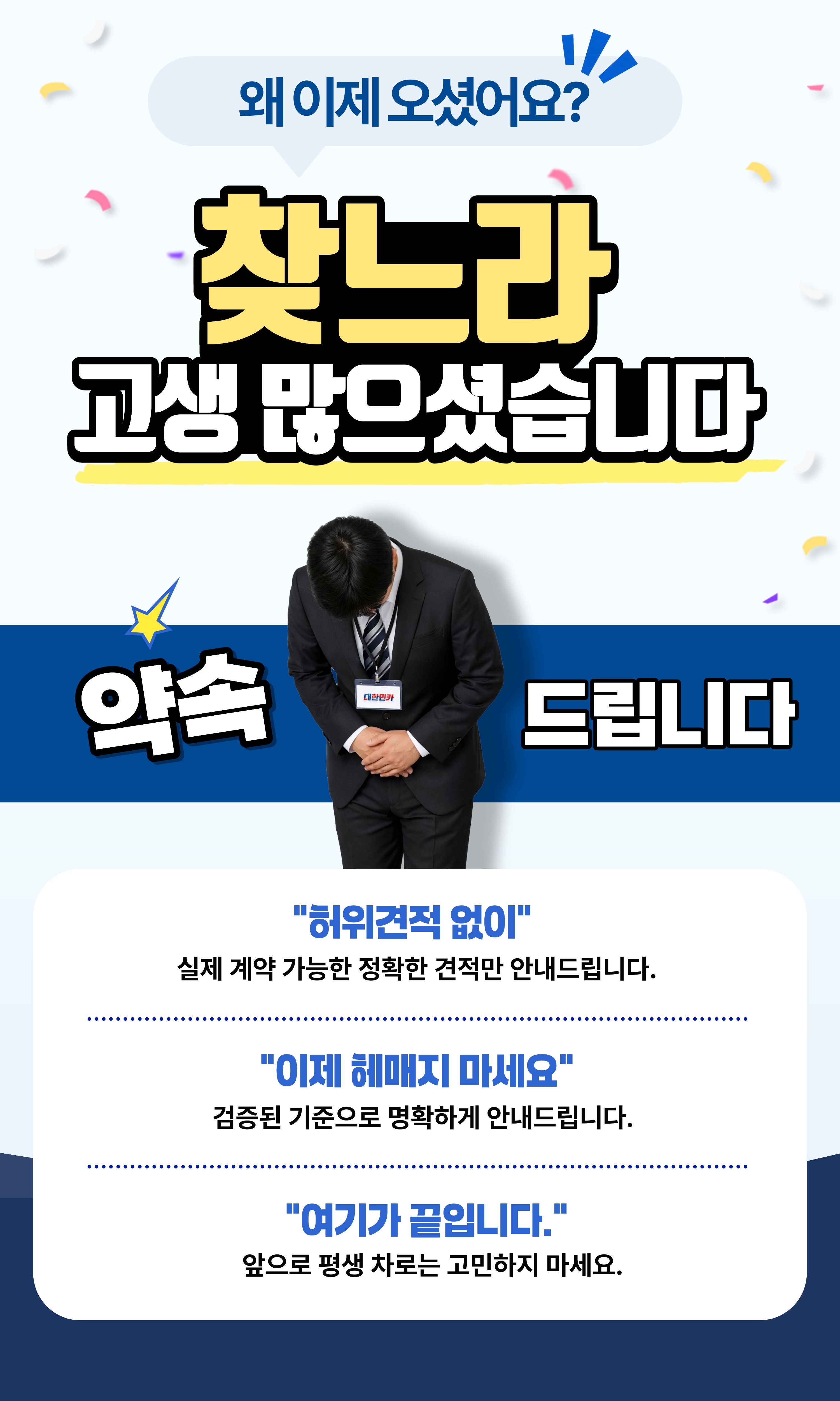 "안내받은 금액과 실제 진행 금액 동일 추가비용 없이 계약 진행 / 약속된 페이백 정상 지급 타사보다 처음 제시 받았던 견적은 높은 편의였으나, 제시받은 견적으로 약정까지 가능한곳은 대한민카만 가능 했습니다."